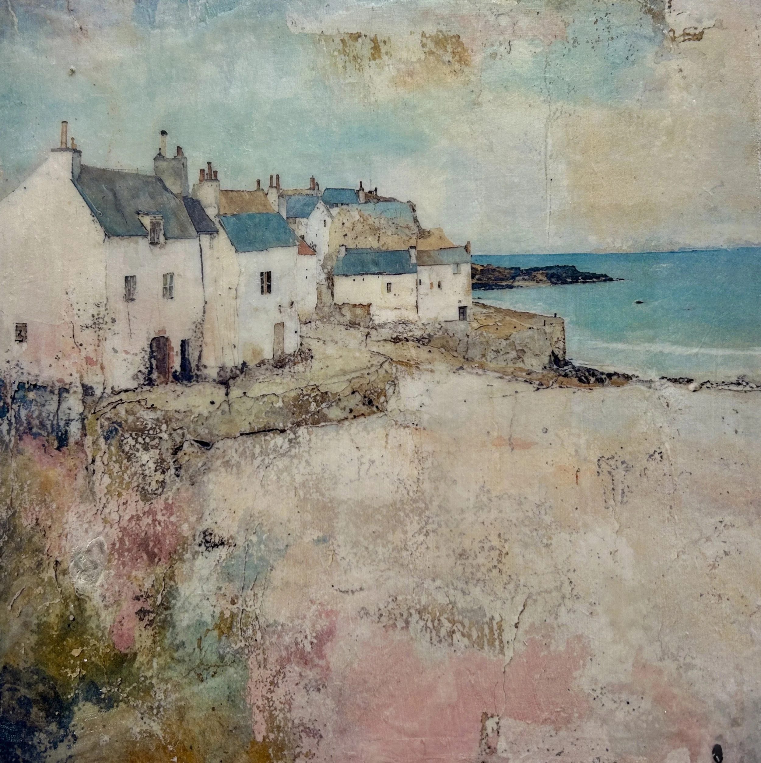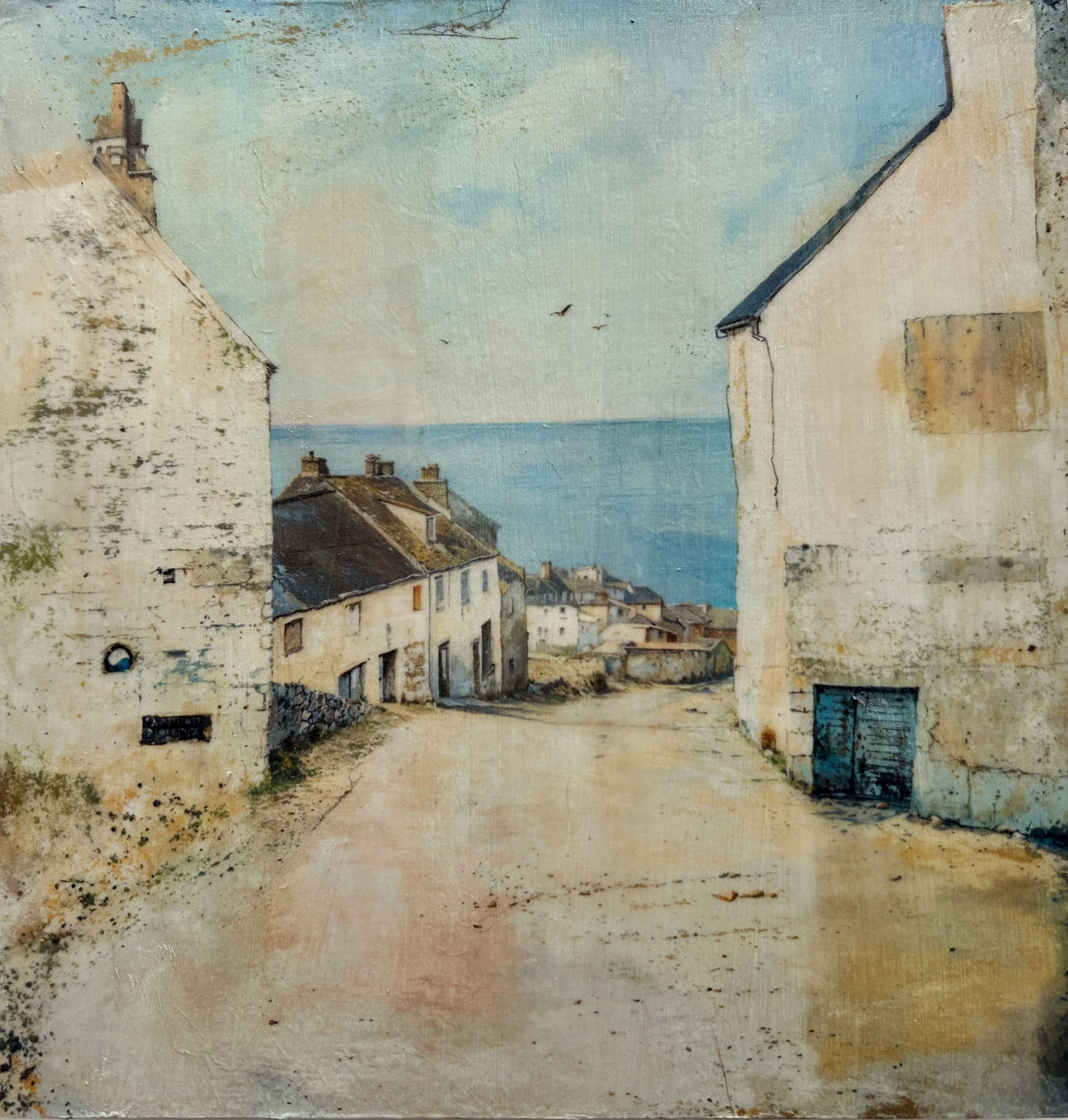 My name is Holly Ann Burns. I’m an encaustic and mixed-media artist living in the southwestern corner of Michigan. I’ve recently moved back to the area after being away for many years. It’s been an inspiring experience. The area is beautiful, the people are warm and hardworking, and the artist community is wonderful!